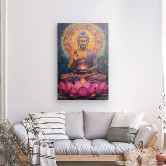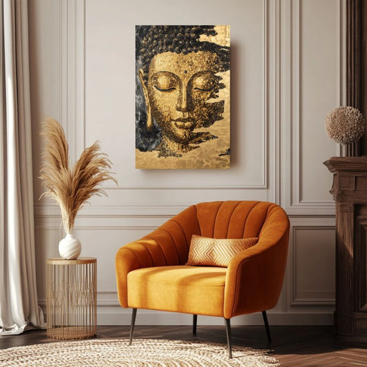 Un tableau bouddha symbolise la paix intérieure, la sagesse et l’harmonie. Il est souvent choisi pour créer une ambiance zen et équilibrée dans la maison.