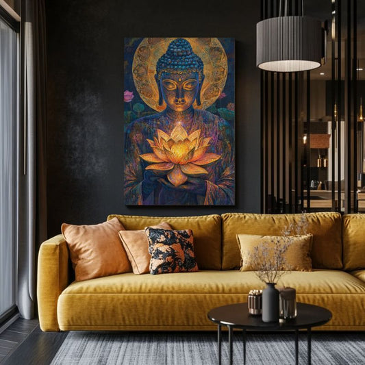 Le choix d’un tableau bouddha dépend avant tout de l’atmosphère que vous souhaitez créer. Un tableau doré ou noir et or apporte une touche luxueuse et chaleureuse, idéale pour sublimer un salon ou un hall d’entrée. Les tableaux aux teintes douces comme le gris, le vert ou le bleu favorisent une ambiance zen et apaisante, parfaite pour une chambre à coucher ou un espace de détente. Les visuels modernes et colorés conviennent davantage aux intérieurs contemporains et dynamiques, tandis que les modèles en relief ajoutent de la profondeur et deviennent la pièce maîtresse de la décoration murale.