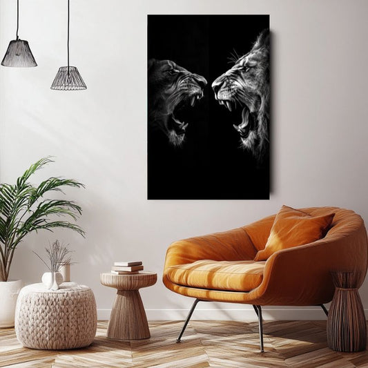 Tableau Lion et Lionne Rugissant