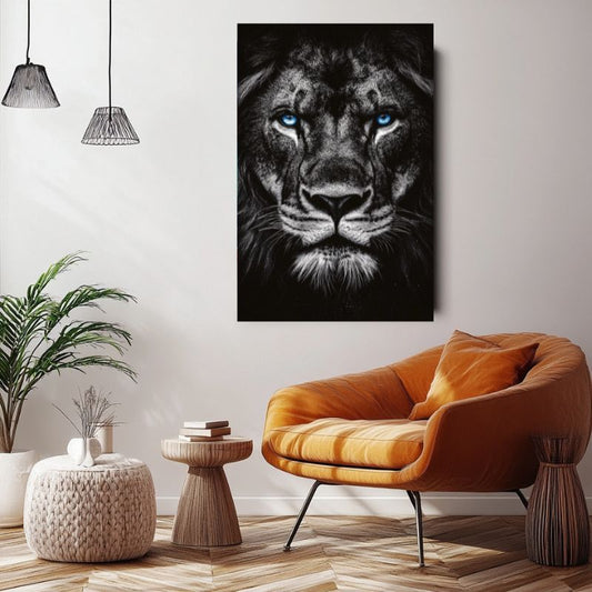 Tableau Lion Yeux Bleus