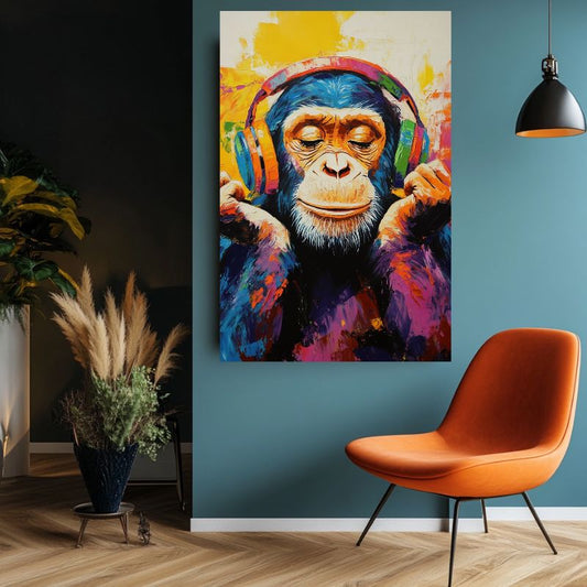 Tableau Singe avec casque de musique