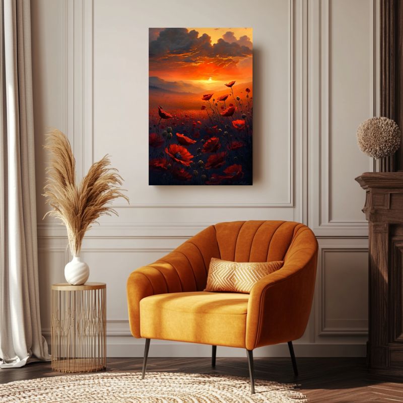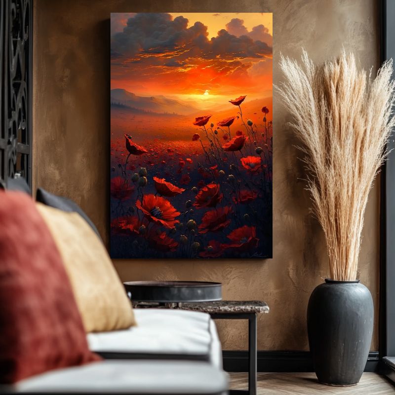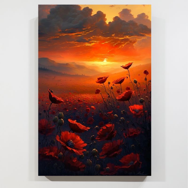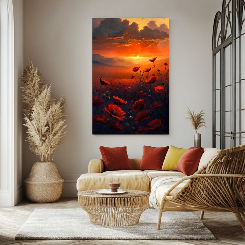 Admirez la beauté éphémère d'un champ de coquelicots au lever du jour avec ce magnifique tableau imprimé sur toile. Capturant la magie et la sérénité de la nature, ce tableau ajoutera une touche de couleur et de calme à votre décoration intérieure.